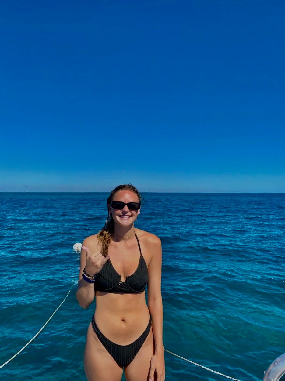 Day two of diving was like the cherry on top. Perfect weather, crystal-clear waters, baby green sea turtles swimming around in me in circles and dolphins saying hello on our way backβpure magic. We even did fish surveys for REEF, making us part of something much bigger than ourselves.